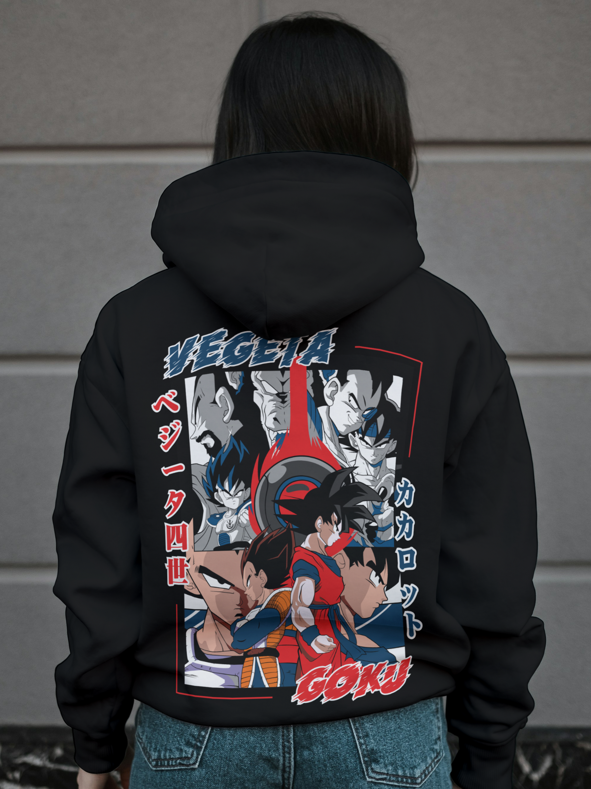 Inspired by two of anime’s strongest warriors — Goku’s limitless optimism and Vegeta’s fierce pride. This hoodie embodies growth, power, and the unstoppable energy of never backing down.